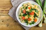 - Agregar un puñado de espinacas y 1 tomate picado en cubitos a la sartén, saltear hasta que las espinacas se marchiten y el tomate se ablande.
