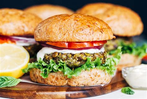 - Preparación: Triture las lentejas cocidas en un procesador de alimentos hasta que estén suaves. Agregue la cebolla picada, el ajo picado, el pan rallado, el huevo, sal y pimienta y mezcle bien. Forme la mezcla en hamburguesas de tamaño uniforme. Cocine las hamburguesas en una sartén con aceite caliente durante unos 3-4 minutos por cada lado. Tueste los panes para hamburguesa y agregue lechuga, tomate, cebolla y queso cheddar en la parte superior de la hamburguesa. Mezcle la mayonesa y la mostaza en un bol pequeño y unte en la parte superior del pan antes de cerrar el sándwich.