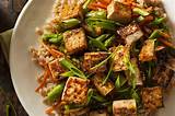 - Preparación: Caliente el aceite de oliva en una sartén grande a fuego medio-alto. Agregue la cebolla y el ajo y saltee hasta que estén dorados. Agregue el brócoli, la zanahoria y los champiñones y continúe salteando hasta que las verduras estén cocidas pero todavía crujientes. Agregue el tofu cortado en cubos y continúe salteando hasta que esté dorado. Mezcle la salsa de soja, la miel y el jengibre molido en un bol pequeño